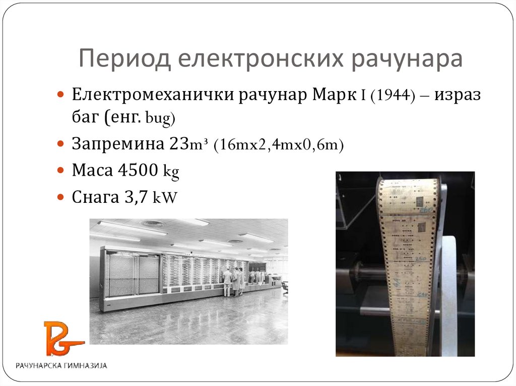 Период електронских рачунараЕлектромеханички рачунар Марк I (1944) – израз