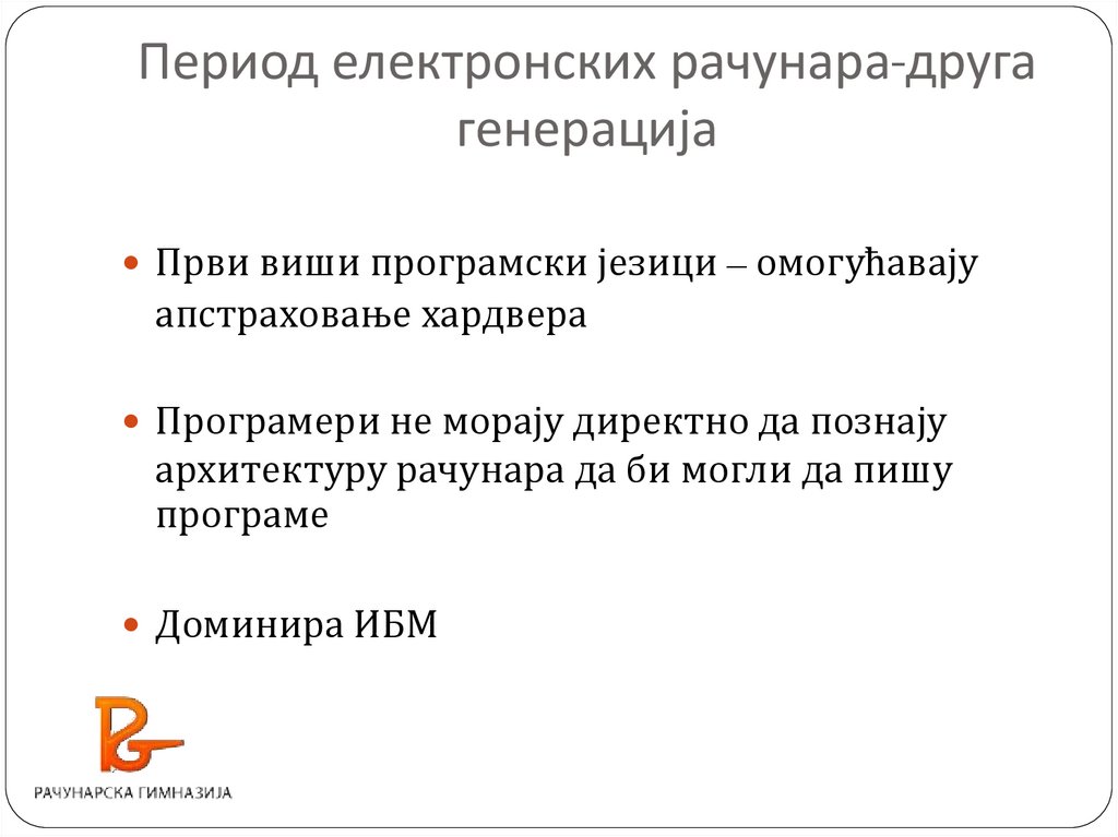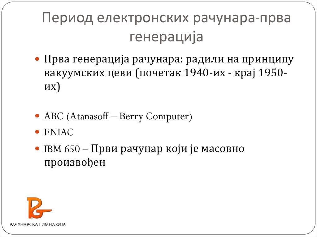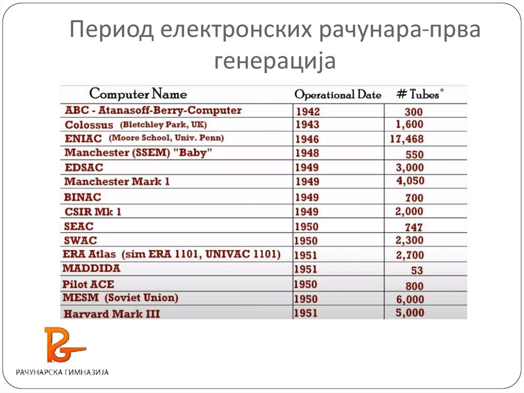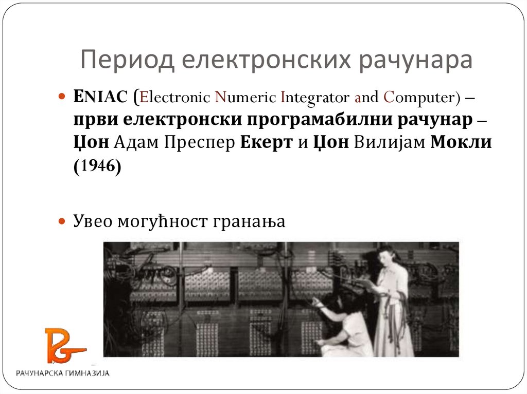 Период електронских рачунараЕNIAC (Electronic Numeric Integrator and Computer) –