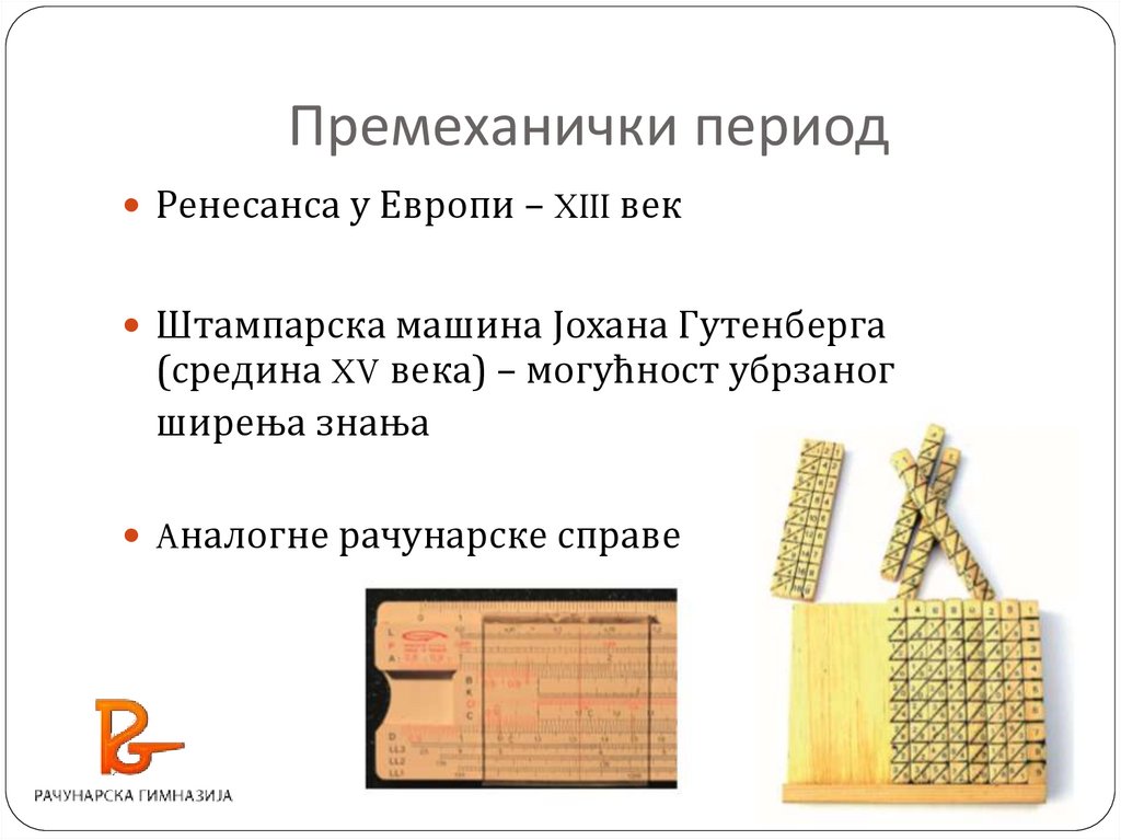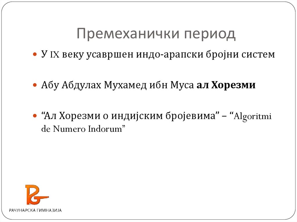 Премеханички периодУ IX веку усавршен индо-арапски бројни систем
