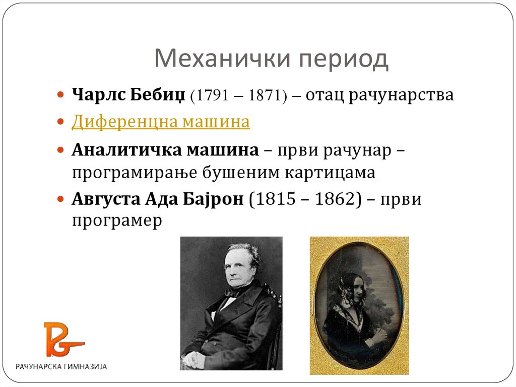 Механички периодЧарлс Бебиџ (1791 – 1871) – отац рачунарства