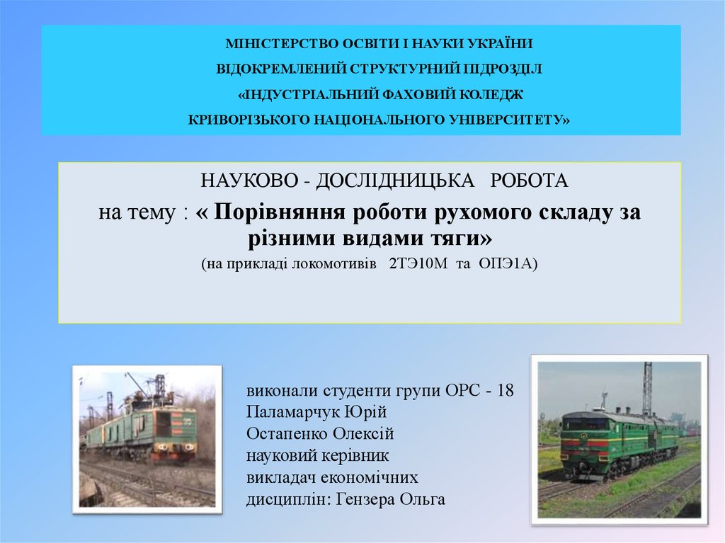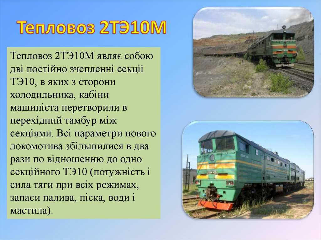 (на прикладі локомотивів 2ТЭ10М та ОПЭ1А)