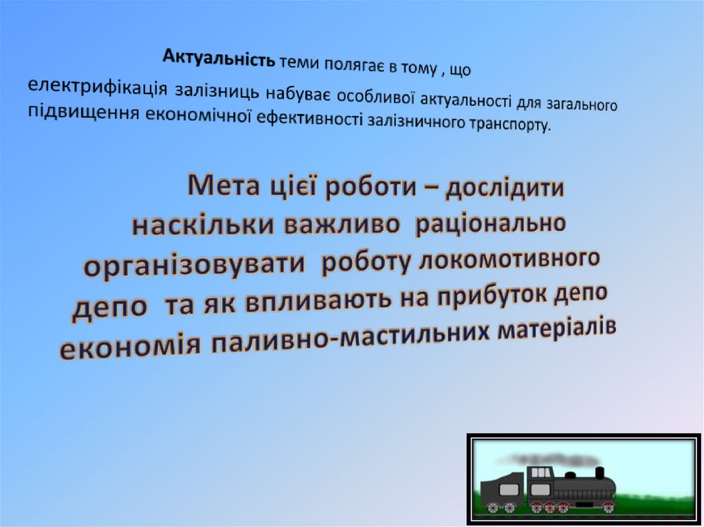 перевезень та зменшення потреби у кількості локомотивів та локомотивних