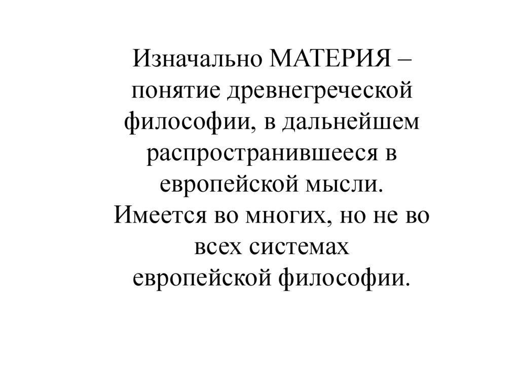 Изначально МАТЕРИЯ –понятие древнегреческой