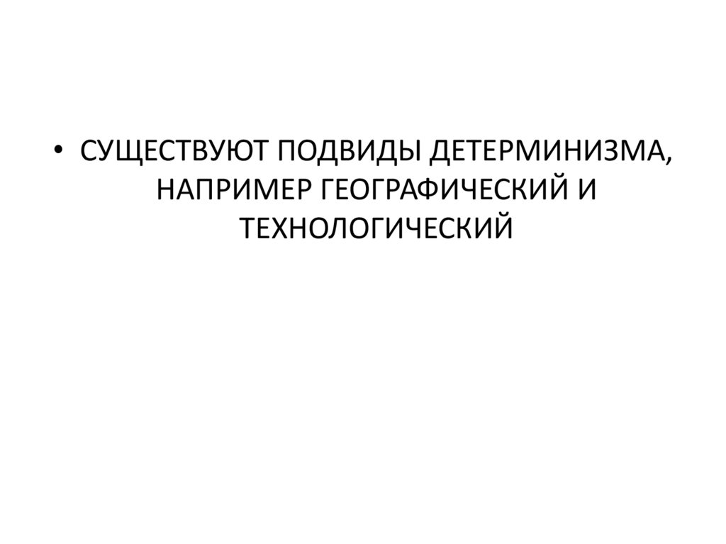 • СУЩЕСТВУЮТ ПОДВИДЫ ДЕТЕРМИНИЗМА,НАПРИМЕР ГЕОГРАФИЧЕСКИЙ И