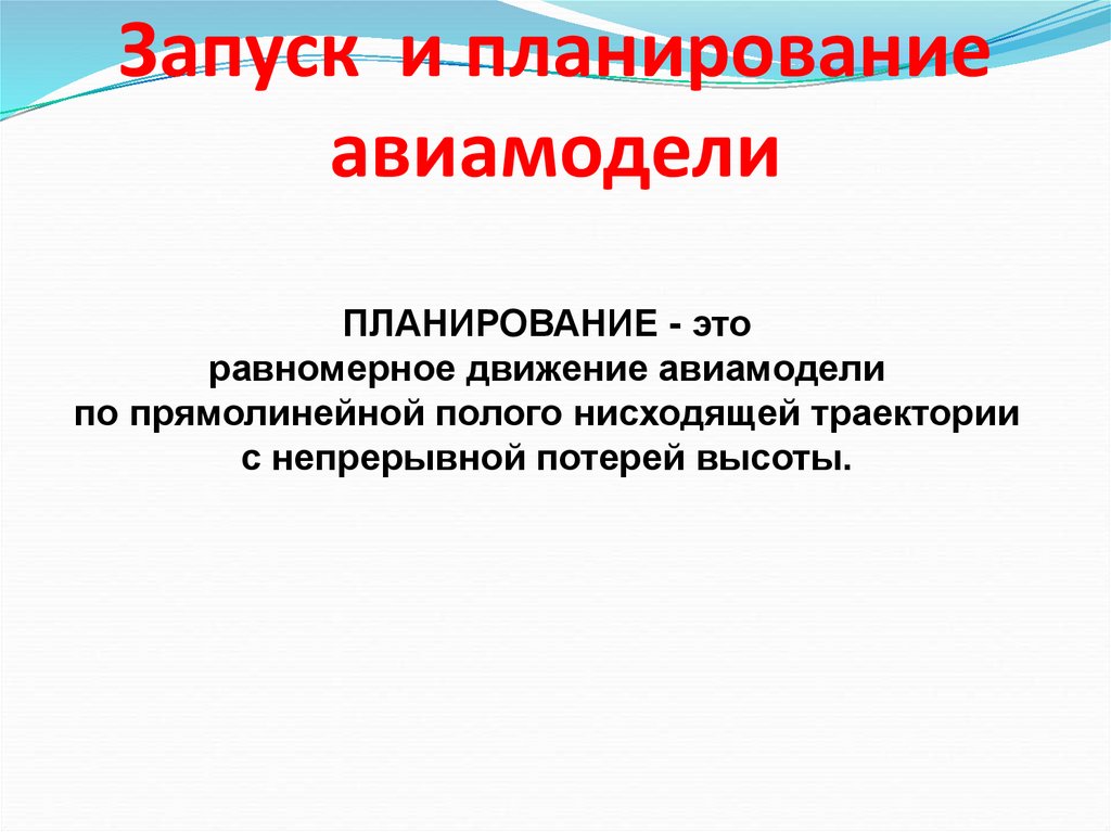 ПЛАНИРОВАНИЕ - эторавномерное движение авиамодели