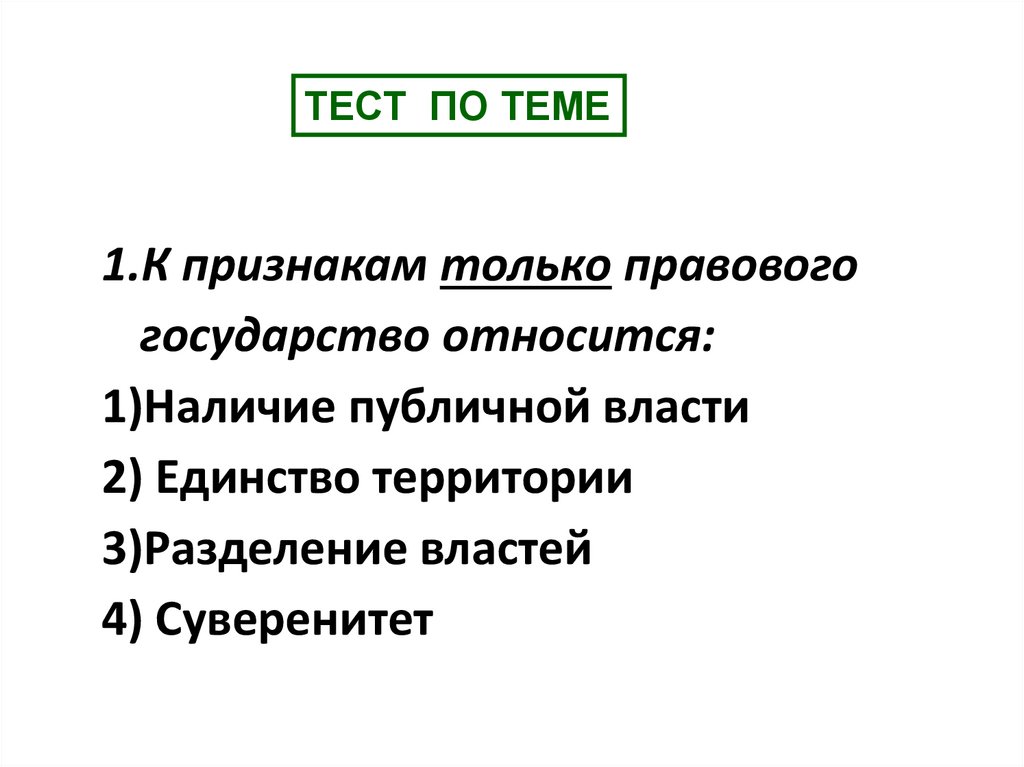 ТЕСТ ПО ТЕМЕ1.К признакам только правового