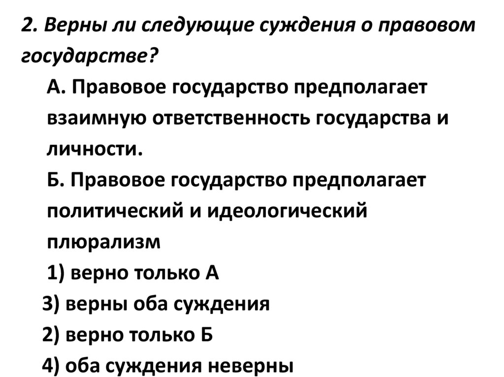 2. Верны ли следующие суждения о правовомгосударстве?