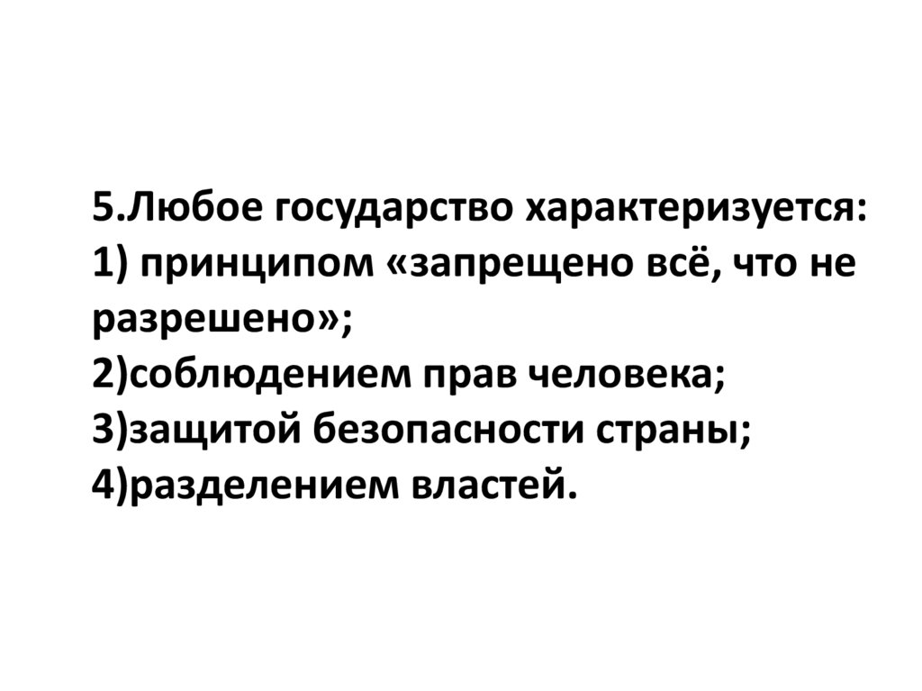 5.Любое государство характеризуется:1) принципом «запрещено всё, что не