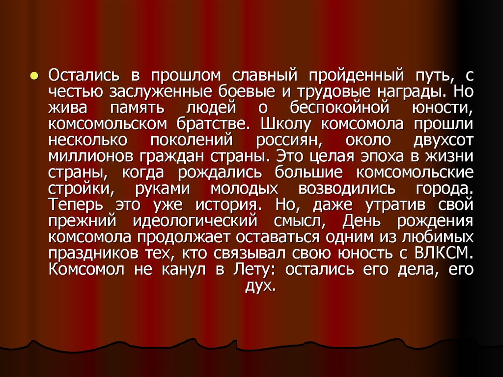 праздников тех, кто связывал свою юность с ВЛКСМ.