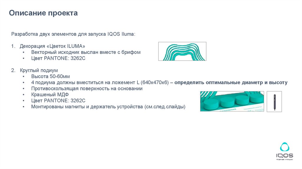 Описание проектаРазработка двух элементов для запуска IQOS Iluma: