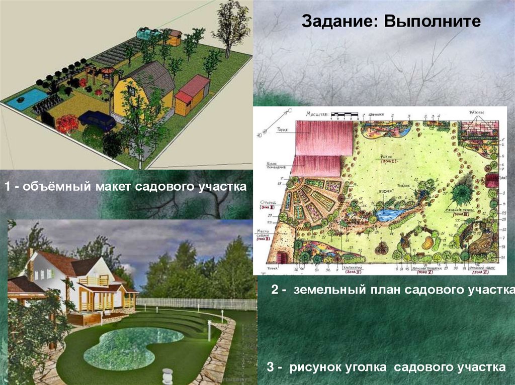 Задание: Выполните1 - объёмный макет садового участка
