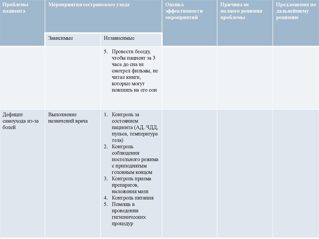 (сестринскую историю болезни, карту сестринского ухода, лист
