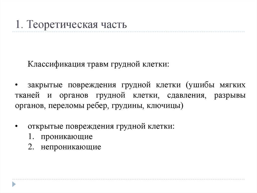 1. Теоретическая частьКлассификация травм грудной клетки: