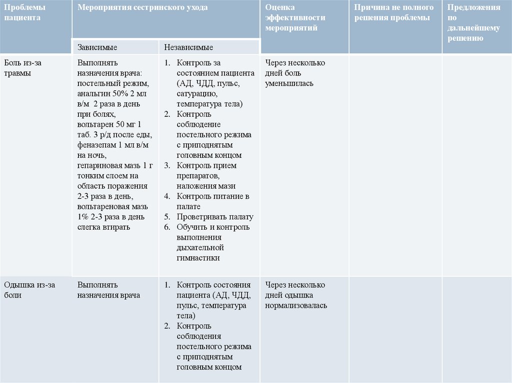 уходе за пациентом с травмой грудной клетки в стационаре.