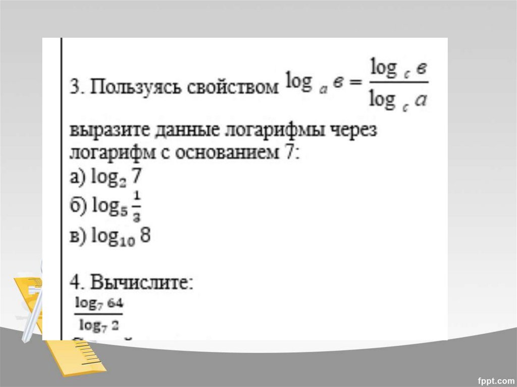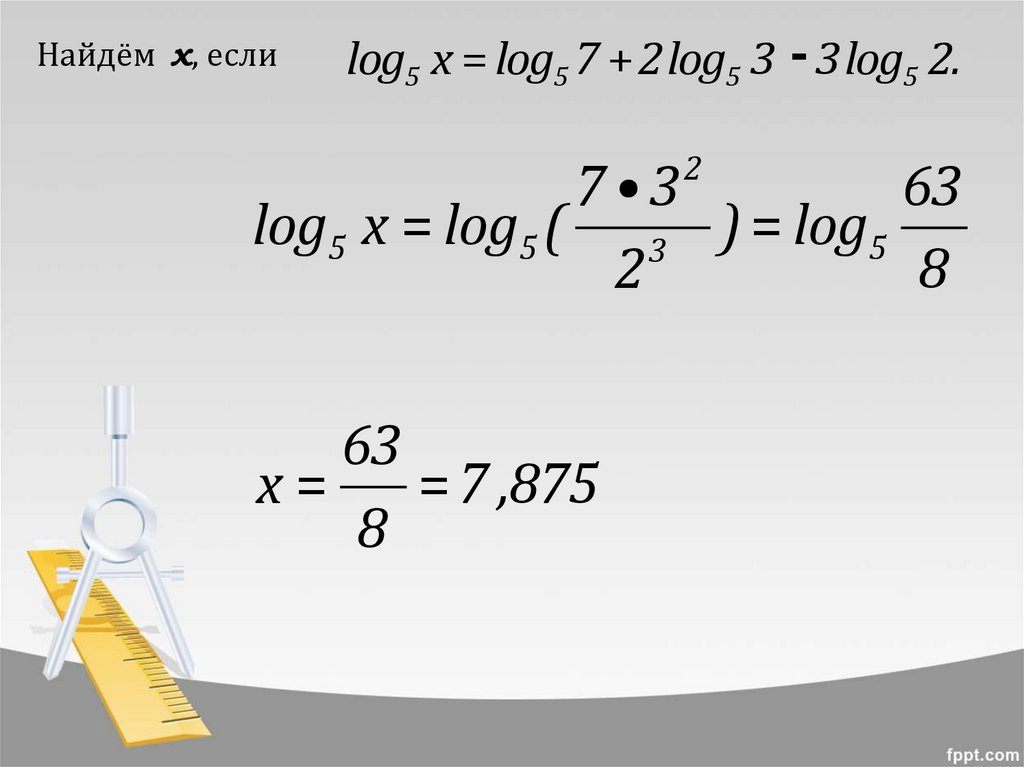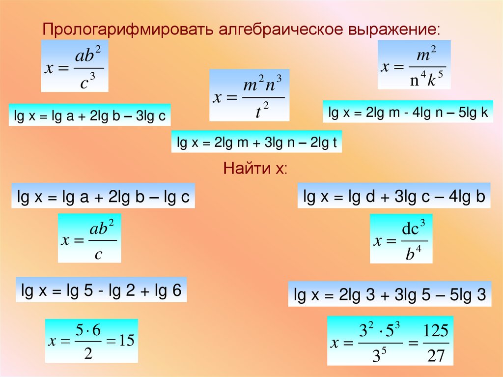 Если число х представлено алгебраическимвыражением, то логарифм любого выражения