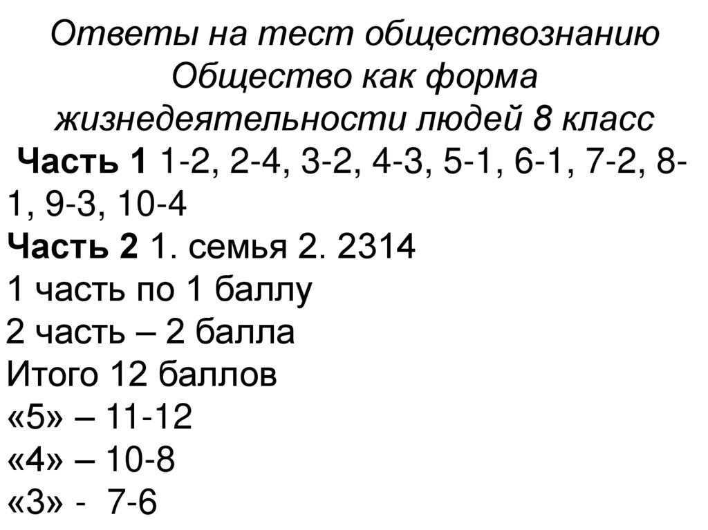 Ответы на тест обществознаниюОбщество как форма