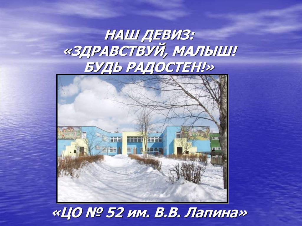 1. НАШ ДЕВИЗ: «ЗДРАВСТВУЙ, МАЛЫШ! БУДЬ РАДОСТЕН!» МБОУ «ЦО № 52 им. В.В. Лапина»