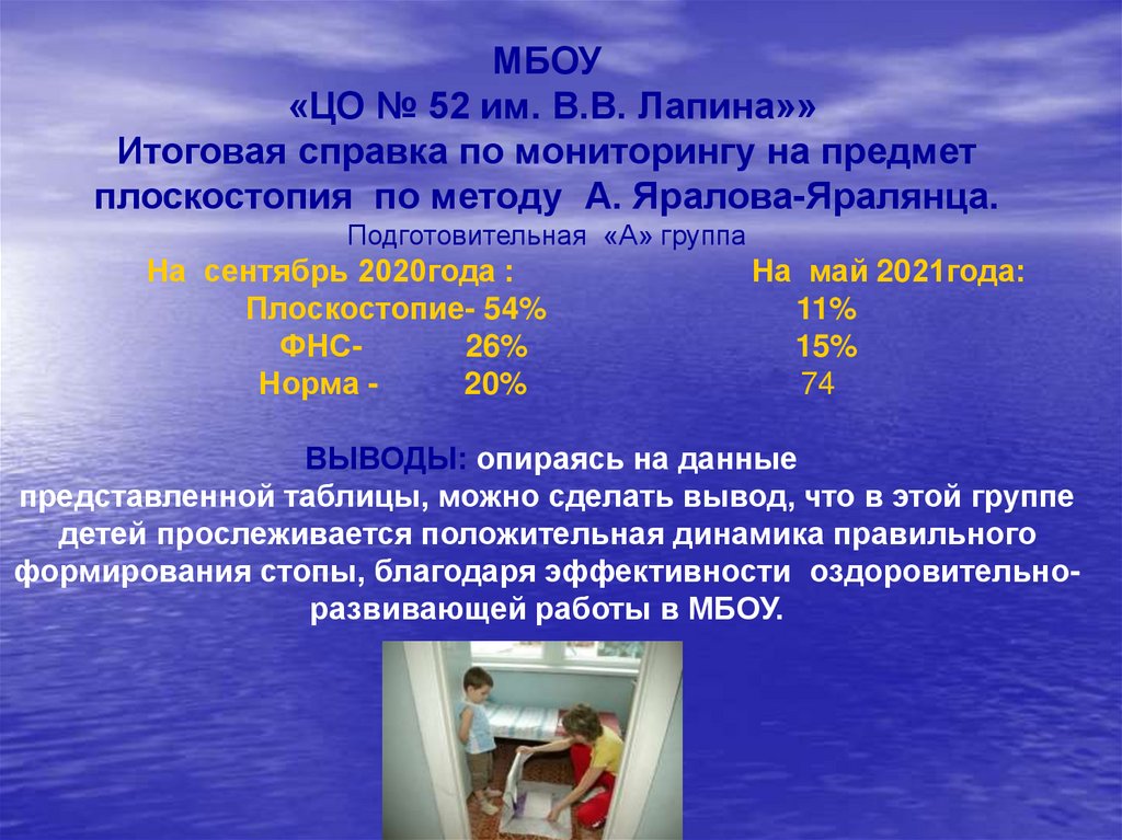 формирования стопы, благодаря эффективности оздоровительноразвивающей работы в МБОУ.