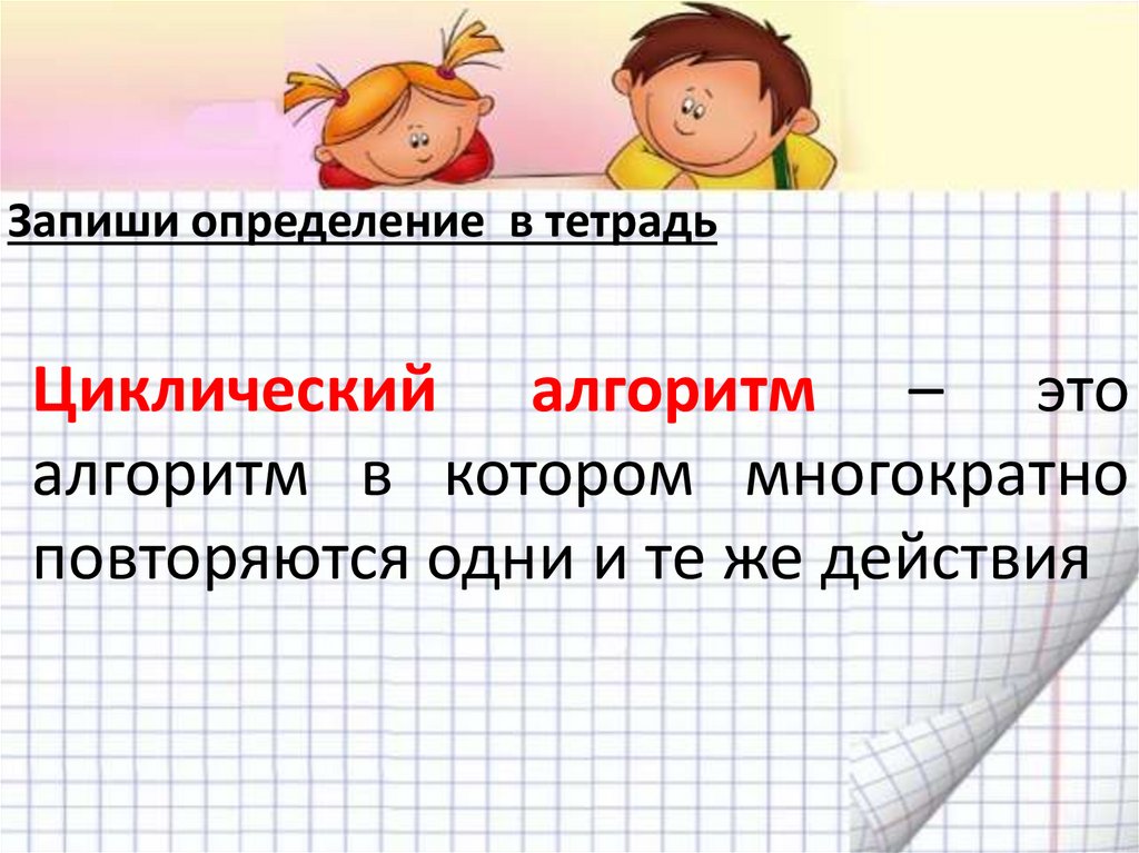Запиши определение в тетрадьЦиклический алгоритм – это