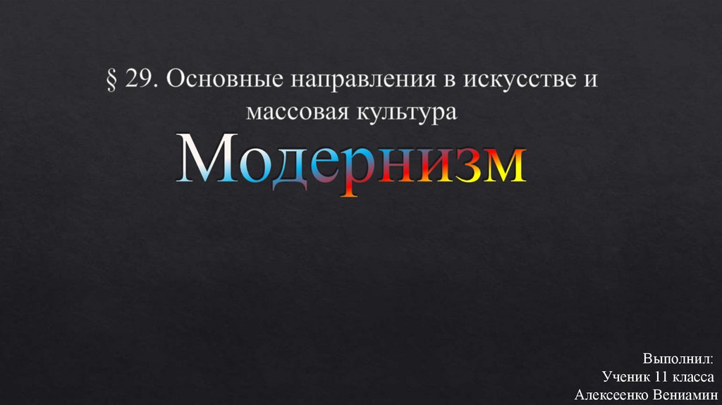 Основные направления в искусстве и массовая культура. Модернизм