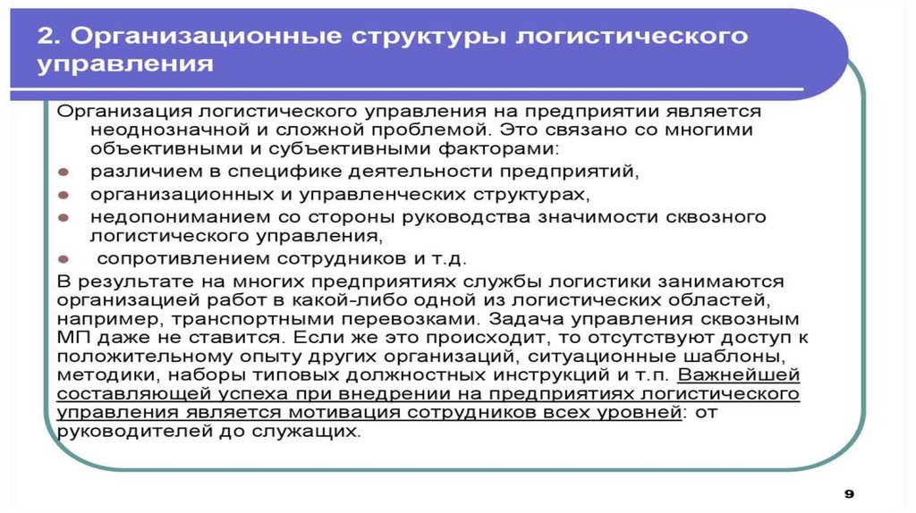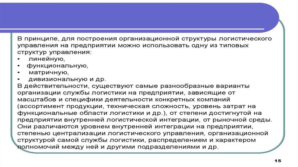 организационные структуры логистической службы