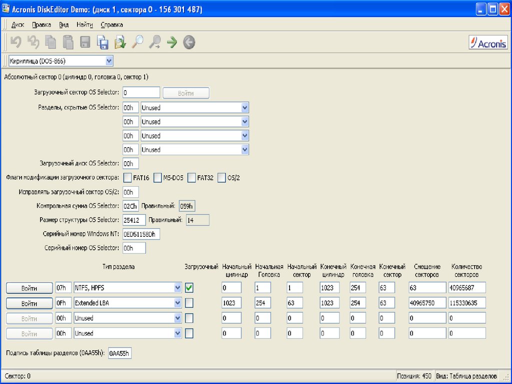 Просмотр и редактирование жесткого диска (DiskEditor)
