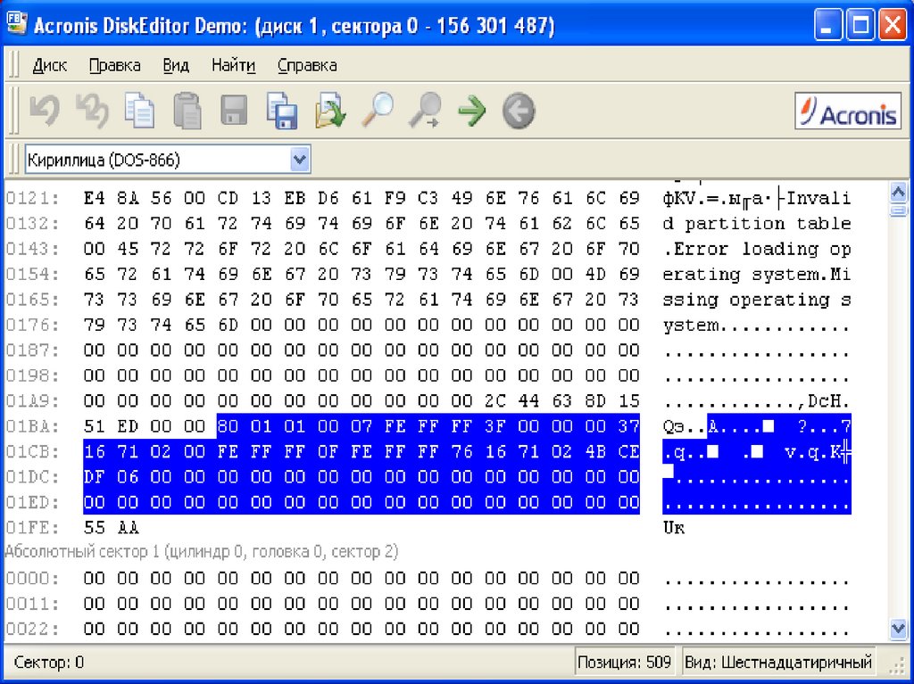 1. Просмотр и редактирование жесткого диска (DiskEditor)