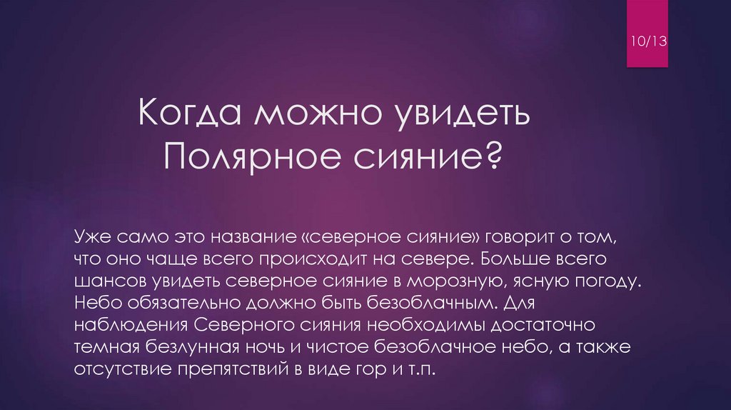 шансов увидеть северное сияние в морозную, ясную погоду.