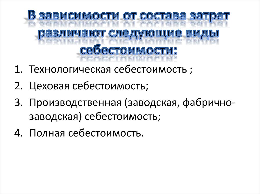 1. Технологическая себестоимость ;2. Цеховая себестоимость;
