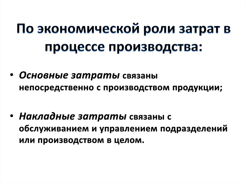 . Они делятся на:• Материальные затраты - стоимость сырья и всех