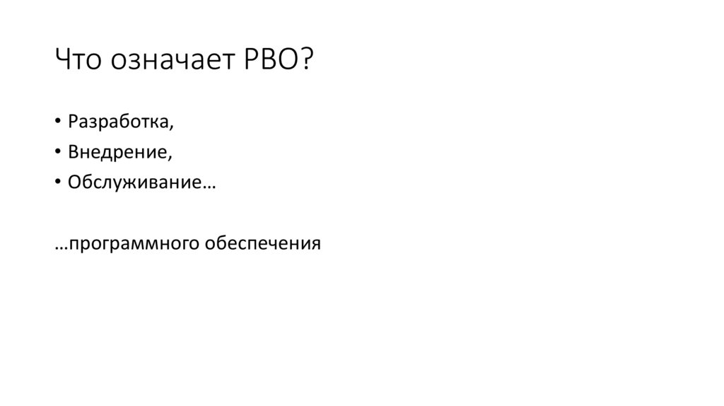 Что означает РВО?• Разработка,