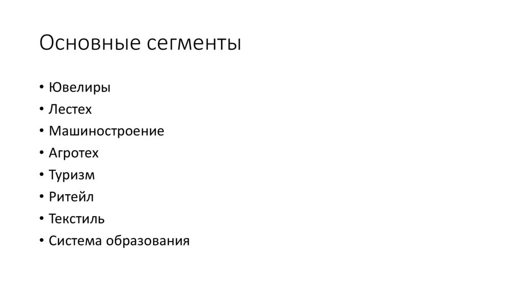 Основные сегменты• Ювелиры
