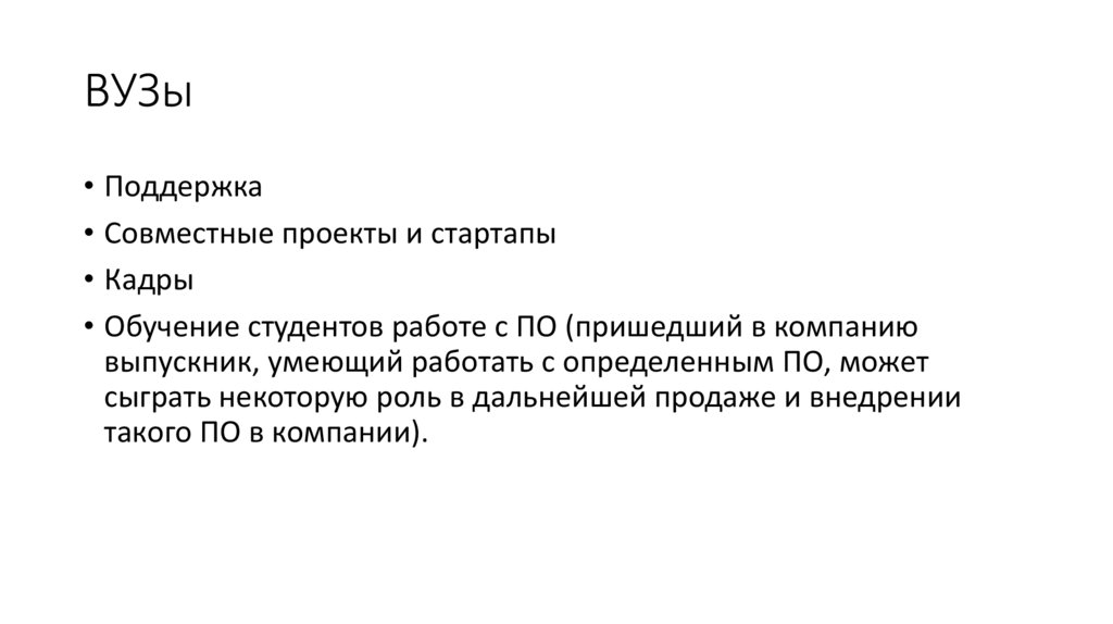 ВУЗы• Поддержка