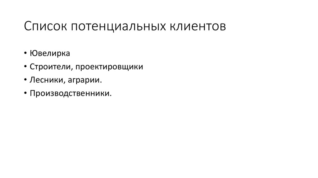 Список потенциальных клиентов• Ювелирка