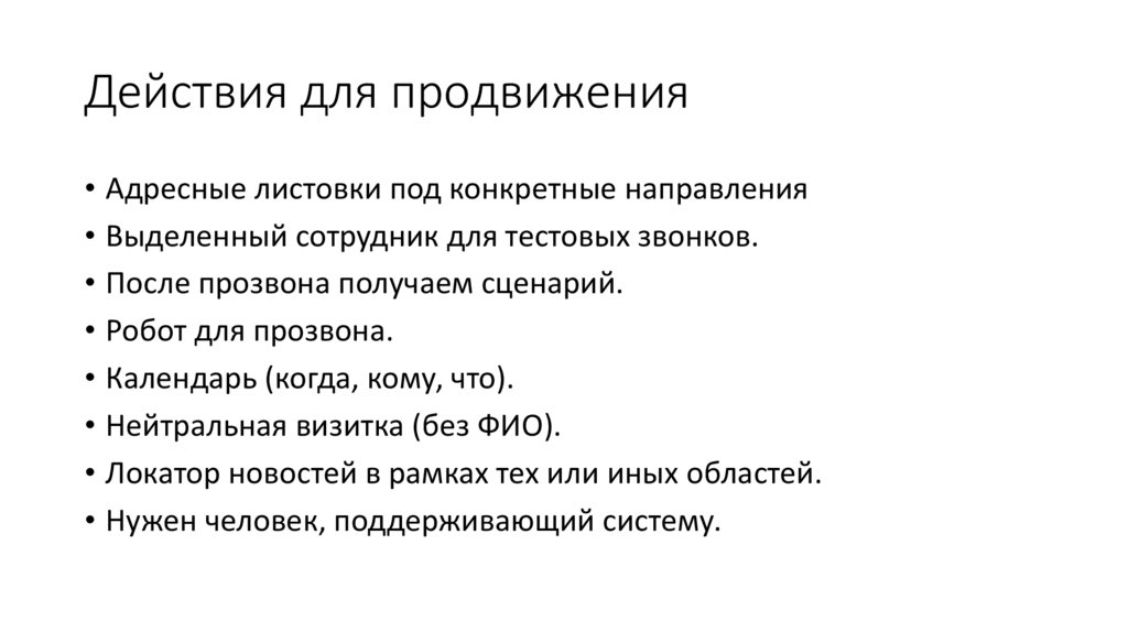 Действия для продвижения• Адресные листовки под конкретные направления