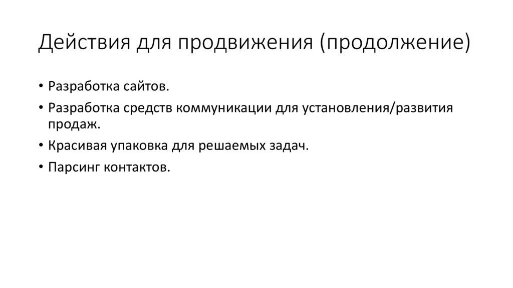 Действия для продвижения (продолжение)• Разработка сайтов.