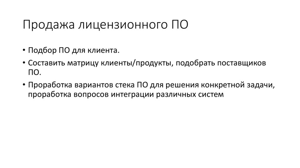 Продажа лицензионного ПО• Подбор ПО для клиента.