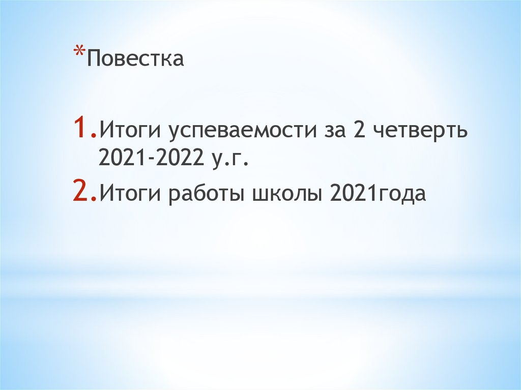 1.Итоги успеваемости за 2 четверть