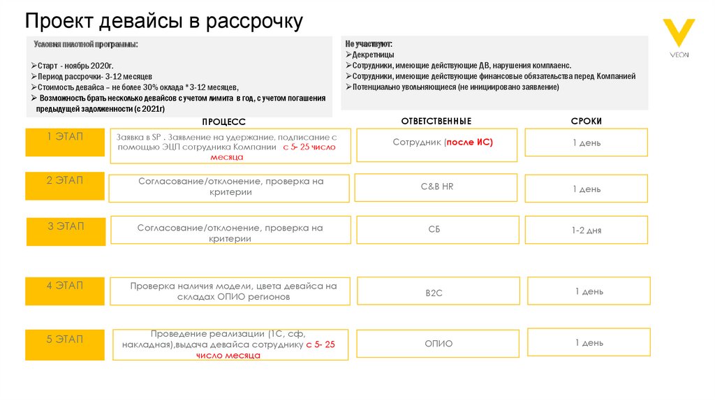 Проект девайсы в рассрочкуУсловия пилотной программы: