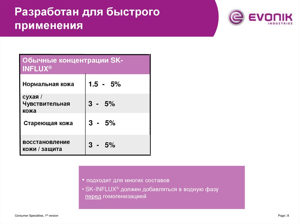 Рекомендуемые рецептуры (2)М/В лосьон с SK-INFLUX®
