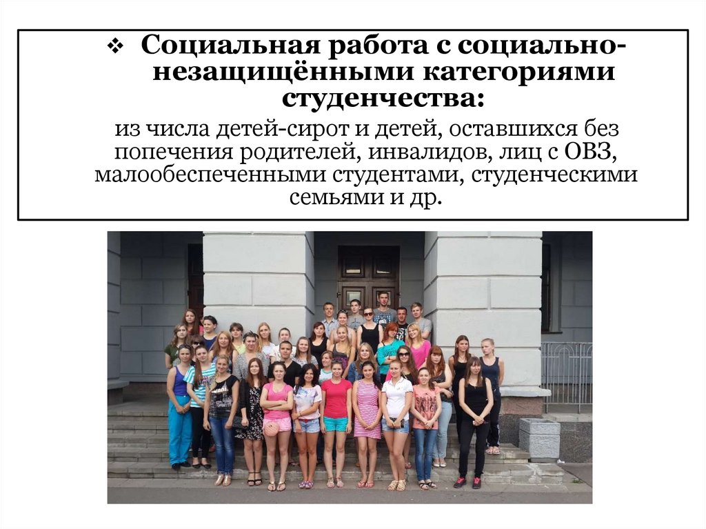 Социальная работа с социальнонезащищёнными категориямистуденчества: