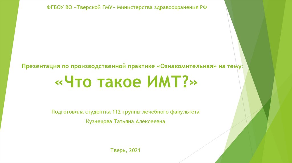 ФГБОУ ВО «Тверской ГМУ» Министерства здравоохранения РФПрезентация по производственной практике «Ознакомительная» на тему: