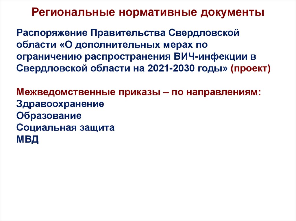 1. Нормативное обеспечение деятельности по профилактике ВИЧ-инфекции