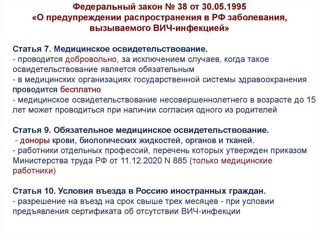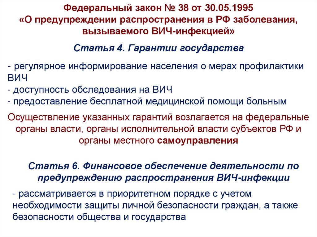 Федеральный закон № 38 от 30.05.1995«О предупреждении распространения в РФ заболевания,