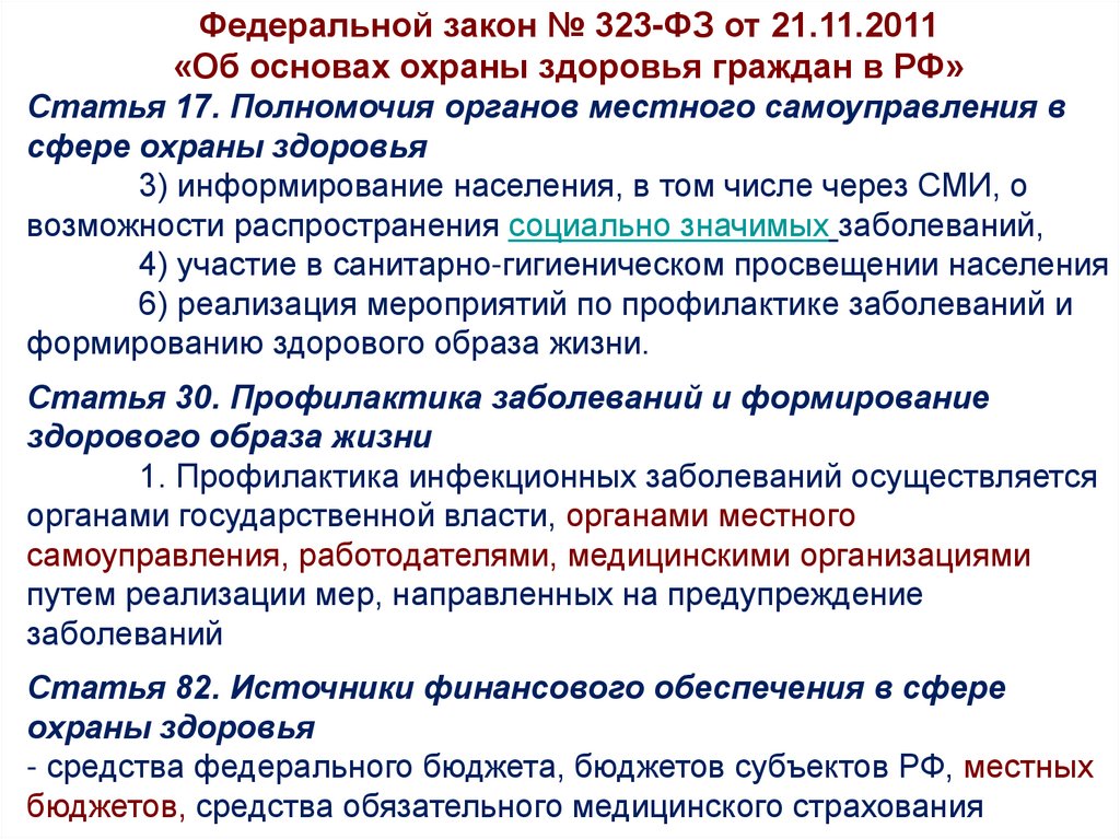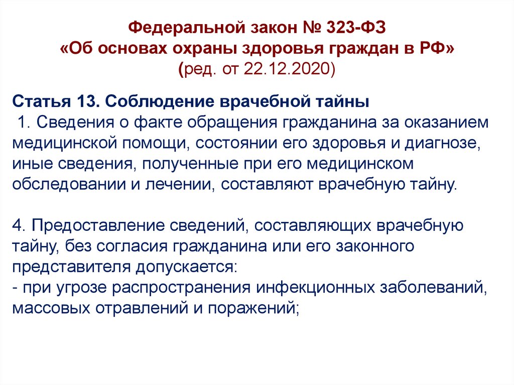 Федеральной закон № 323-ФЗ от 21.11.2011«Об основах охраны здоровья граждан в РФ»