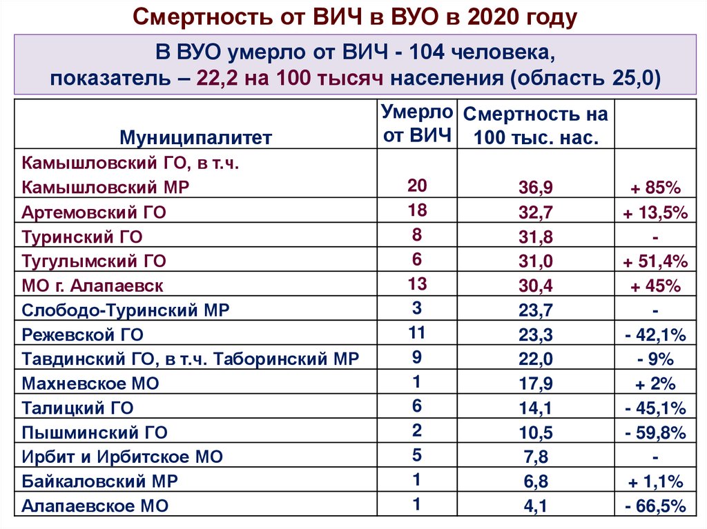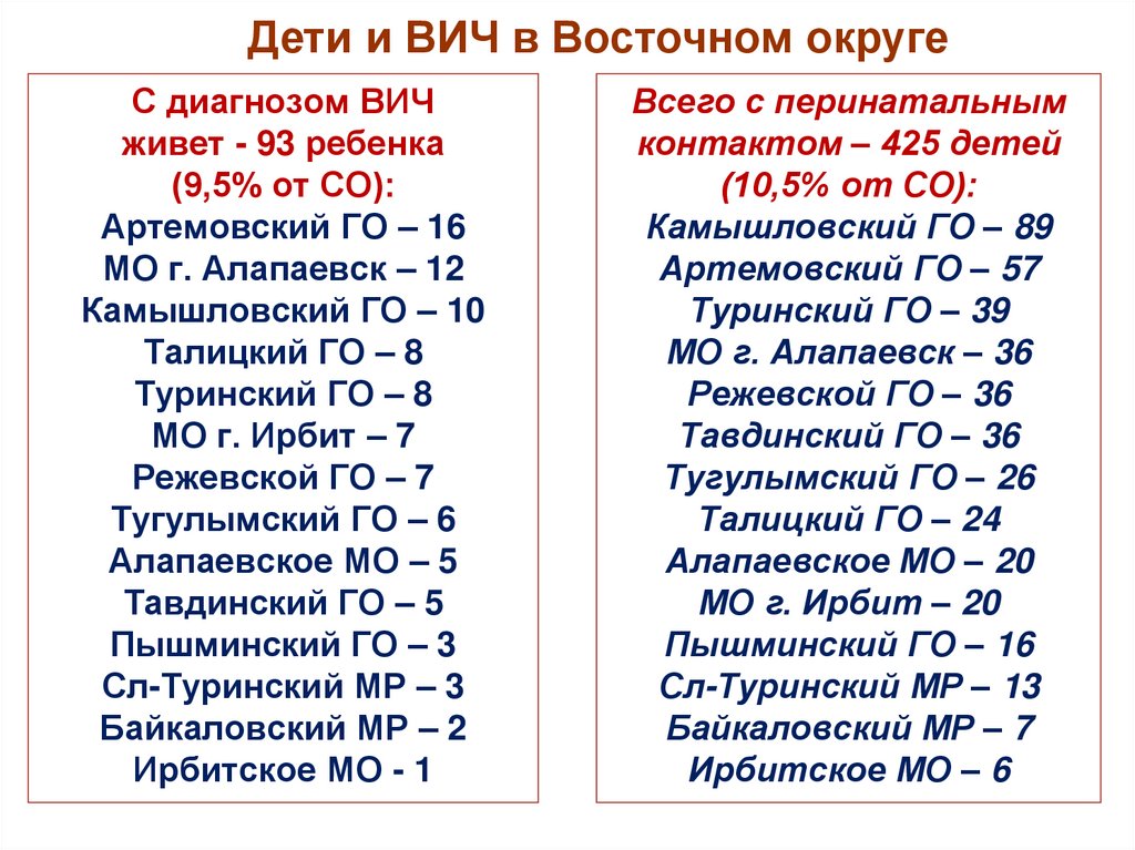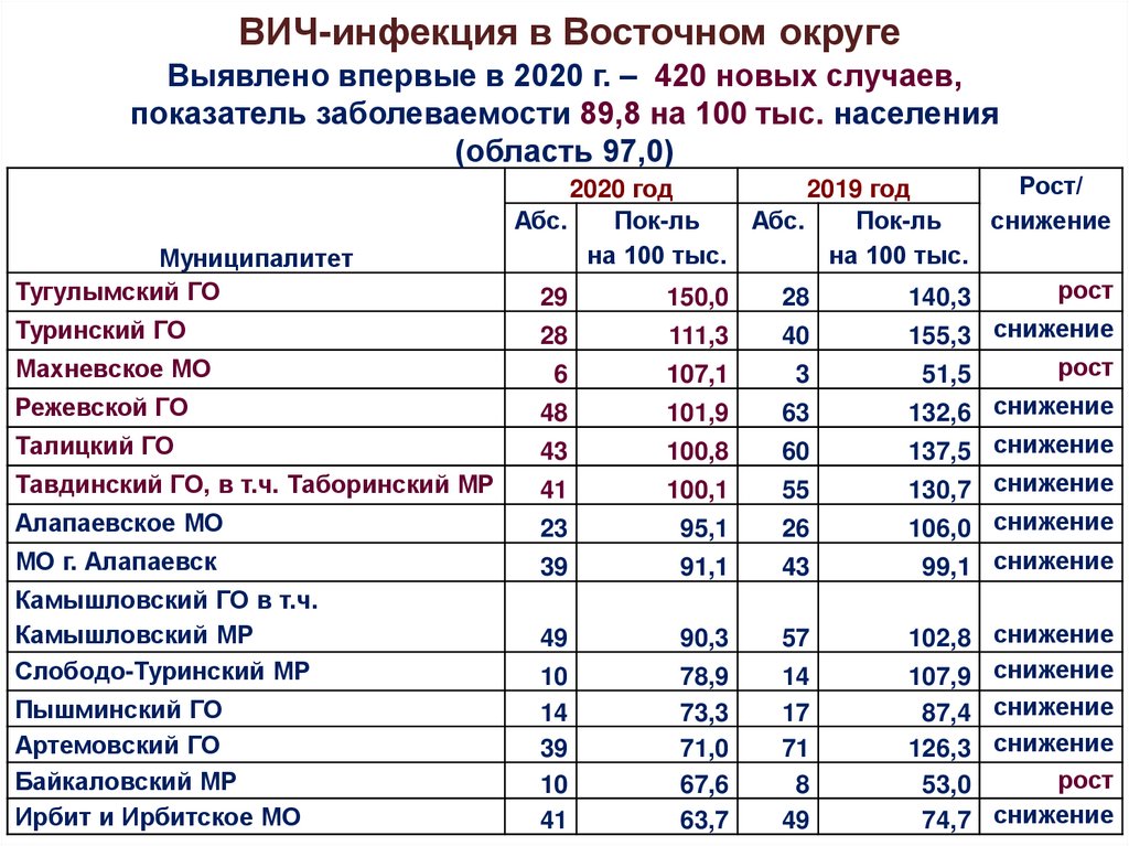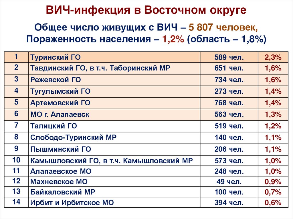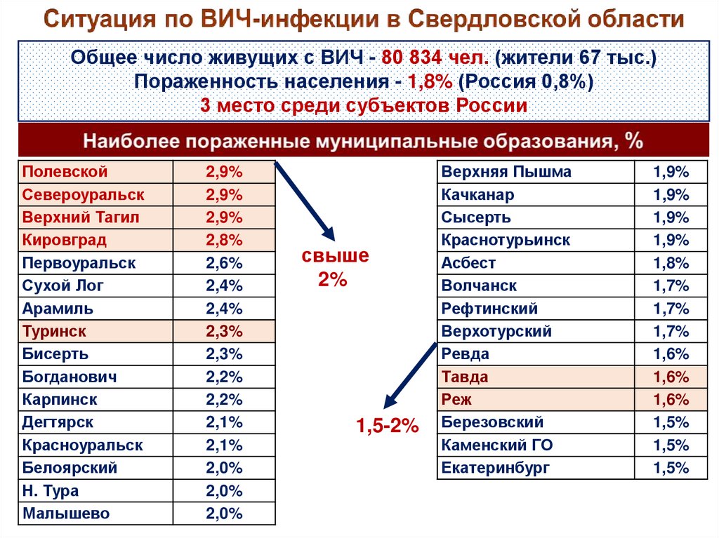 Эпидемическая ситуация по ВИЧ-инфекции в мире, России, Свердловской области, муниципальных образованиях Восточного округа
