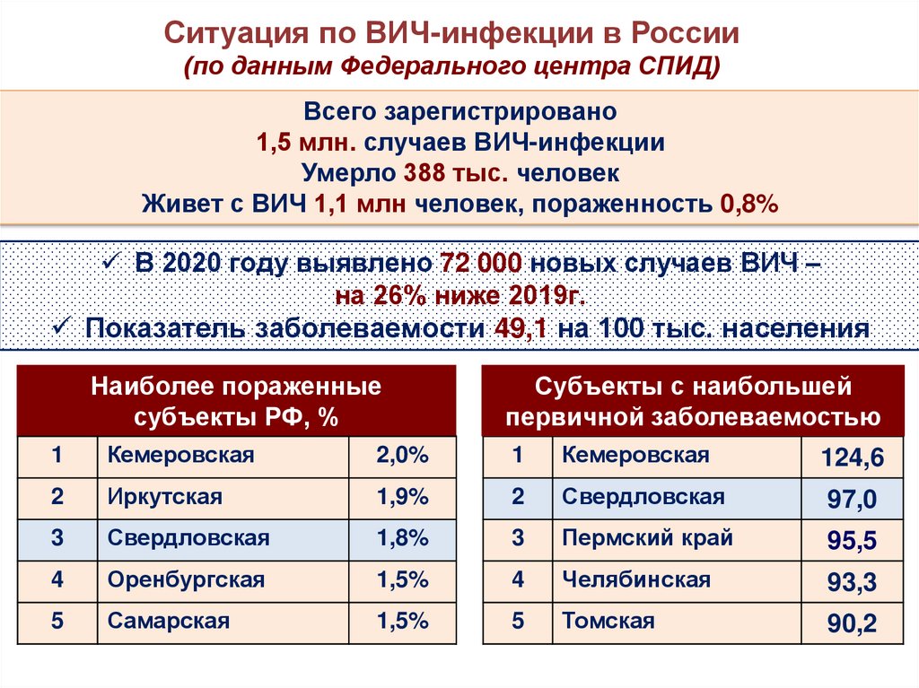 Живет с ВИЧ 1,1 млн человек, пораженность 0,8%