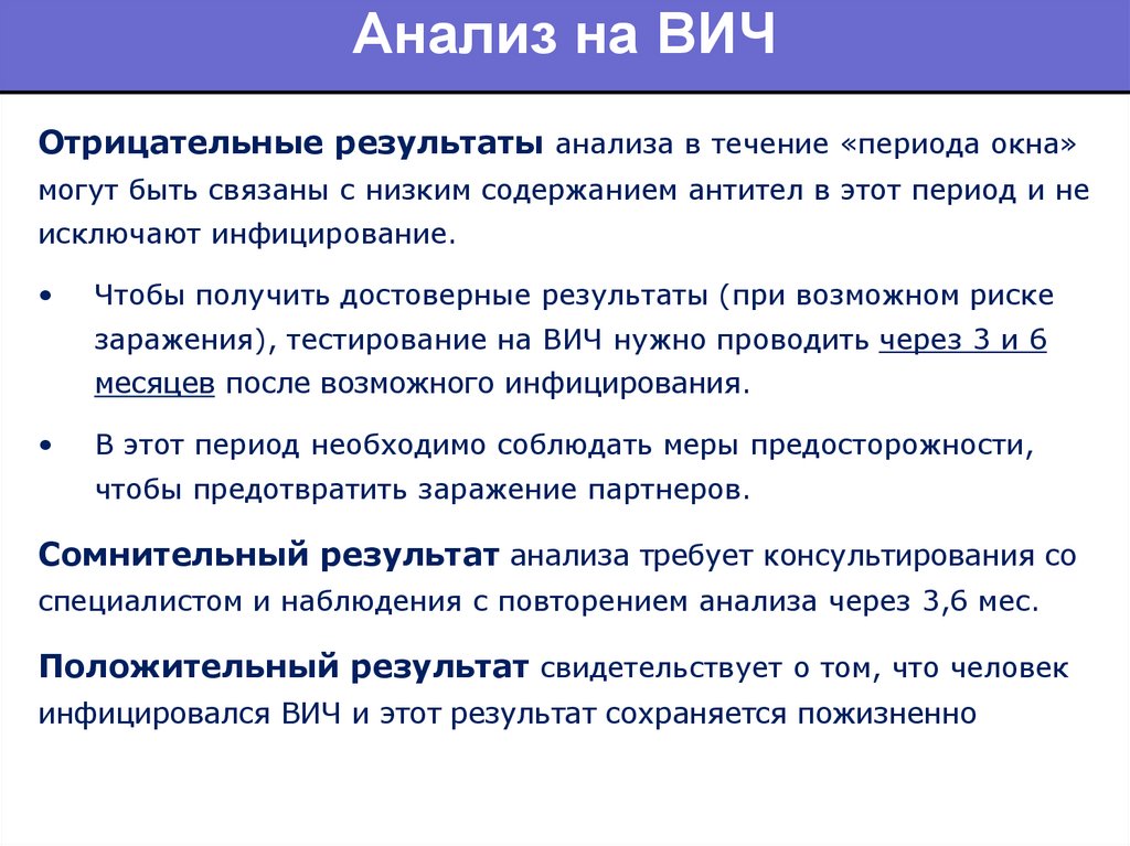 Анализ на ВИЧОтрицательные результаты анализа в течение «периода окна»