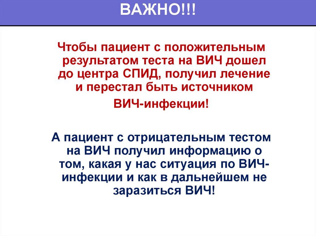ВАЖНО!!!Чтобы пациент с положительным