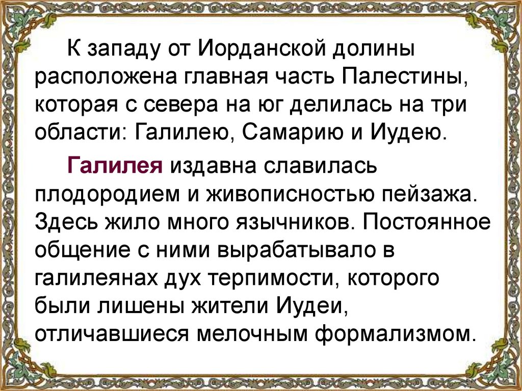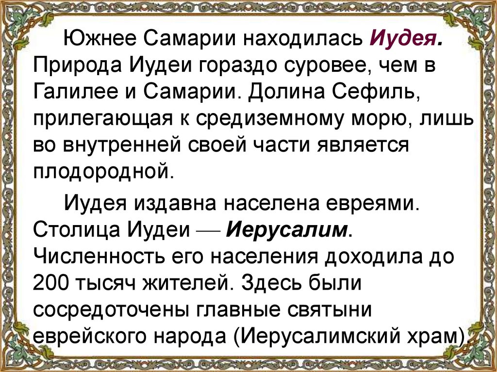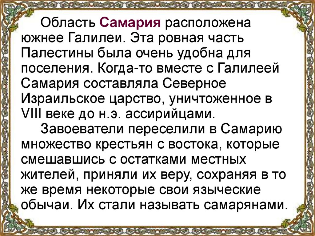 Область Самария расположенаюжнее Галилеи. Эта ровная часть